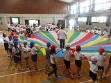 今日から5年生と一緒に,「みんなでおどろう えがおのWA!」の練習を始めました。一緒にダンスやバルーンダンスができて,にじの子の子どもたちは嬉しそうでした。バルーンダンスの中には,ある技が出てくるのですが,その技が今日うまくできて,みんな大喜びでした!