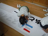 6年生は,運動会に向けて児童会の係の仕事を行っています。大きな布に,運動会のスローガンを絵の具を使って丁寧に塗っていました。赤・青・白の三色の色を取り入れて工夫されています。運動会当日に運動場に掲示されています。お楽しみに!