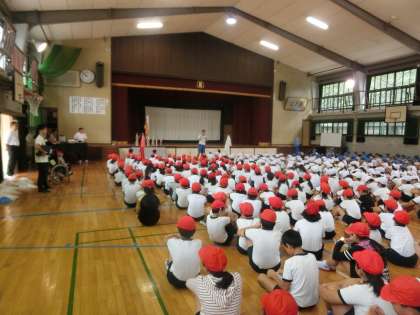 今日は講堂で開閉会式の練習を行い,応援練習は場所を変えて練習しました。元気いっぱいの応援の声が学校中に響いていました。