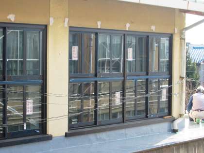 体育館内部に筋交いが入り,窓が全部アルミサッシに入れ替えられました。
