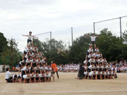 棒引きや組体操では,高学年らしく輝く姿を見せてくれました。片づけもとてもがんばっていました。