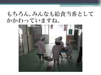 子どもたちが教室でパワーポイントを使って学習しています。