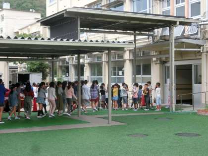 校長先生から「命を守る大切な訓練です。」というお話をしていただきました。いざというときに正しい判断ができるようにこの訓練があるということを,子どもたちも理解できたのではないかと思います。