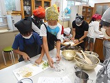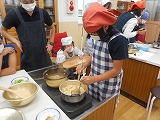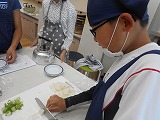 包丁で食べやすい大きさに野菜や油揚げを切ったり,お味噌汁のお味噌をといたりしました。ご飯もお味噌汁もとってもおいしく出来上がり,おかわりもしていました。山の家での学習でもみんなと協力しながら調理ができたらと思います。