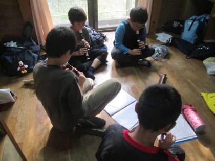 ネイチャービンゴが少し早く終わったので、1時間ほど自由な時間ができました。部屋で過ごしたり、遊んだり・・・。明日の朝の集いで吹くリコーダーの練習をしている人たちもいました。