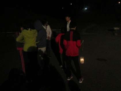 昼にネイチャービンゴをしたときと同じコースを、夜はナイトハイクで通りました。昼とはちがった自然の様子にたくさん気づくことができました。暗くてこわかったけれど、みんなよくがんばりました。