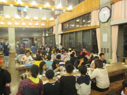 今日は天狗杉登山をしたので、とってもおなかがすいています。昨日よりも、おかわりをして食べている人がたくさんいました。夜は、プレイホールでナイトゲームをします。