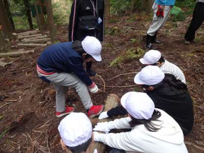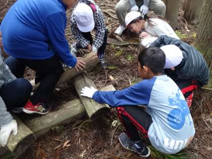 そのあと、班のメンバーで、のこぎりを使って木を切っていきました。本日のめあてどおり、みんなで協力する姿がたくさん見られました。