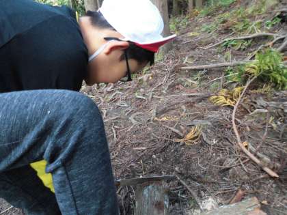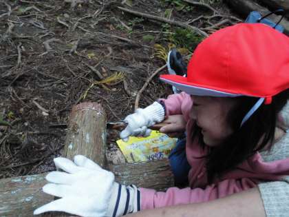 本日の午前中は林業体験を行いました。みんな頑張って、大きな木をのこぎりで切りました。