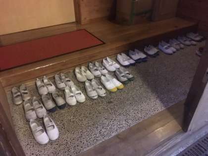 各棟の入口で上靴を脱ぎますが,昨晩の就寝前,5棟の入口を見ると,きれいに上靴が揃えられていました。とても気持ちいいです。他の棟や,お風呂場でも,靴を揃えて脱ぐことができてきています。一つ一つ,様々な点で成長して帰ってくることを期待しています。
