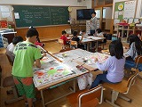 子どもたちが描く空想の生き物がとても表現豊かで見ていてとても面白かったです。大文字山の上を飛ぶ空想の生き物もおり,さすが京都人と感じました。