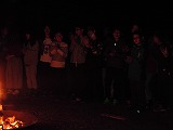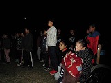 写真は,キャンプファイヤーの様子です。交流学級の友達と一緒に歌をうたったりゲームをしたりして盛り上がりました。