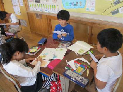 2年生 「お手紙」のお面作り