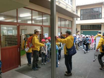 お天気が少し心配ですが,只今,森林インストラクターさんと担任の引率のもと,元気に出発しました。お天気がもてば,衣笠山の山頂でお弁当を食べる予定です。