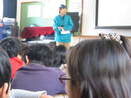 学校でお話を聞いたあと,子どもたちが昨年度取り付けに行った巣箱を回収に行きました。
