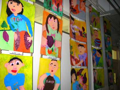 今回は,「北総合支援学校・府立聾学校・朝鮮第三初級学校」の友達の作品を職員室の前に展示しています。たくさんの作品を出品していただきました。