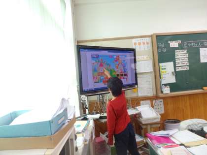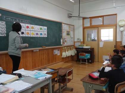金曜日の外国語活動の時間に「色や形」の英語の言い方を知りました。いろいろなゲームを通して,言い方に慣れ,楽しく学習していました。