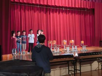 今年度は,い組もろ組もクラスごとに劇をします。いよいよ本番が来週に迫ってました。子どもたちも気合が入っています。大きな声で講堂で練習する姿が見られました。