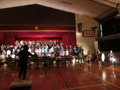 火曜日に,講堂で練習をしました。講堂での初めての演奏練習でした。音楽室ではそろっていた演奏も,講堂ではお互いの音が聴きづらく,リズムがずれてしまうことがありました。