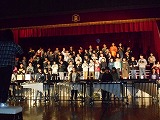 5年生は,講堂で学習発表会の練習を行いました。発表は,歌や合奏を行います。練習の成果を当日発揮できたらと思います。写真は,合奏の練習をしている様子です。