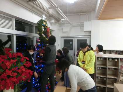 今年も地域の成田様がエントランスにクリスマスツリーを飾ってくださいました。点灯式を,金曜日の5時半頃に行いました。電飾の光から温かみを感じます。月曜日から,子どもたちをエントランスで迎えてくれるクリスマスツリー。大切に見守りたいと思います。