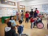 寒い日が続いていますが,にじの子学級の子どもたちは元気いっぱいです。今日の音楽では,「ゆき」「さむいときにはともだちと」「やっぱりボルシチ」「もちつきペタペタ」の歌唱とダンスをして楽しみました。歌やダンスをして一緒に関わることで,心も体もポカポカの音楽となりました。