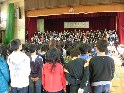 4年生はみんなで「トゥモロー」を合唱しました。