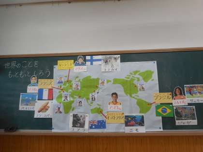 今日学習した国は,オーストラリア,フィンランド,ブラジル,フランスでした。食べ物やスポーツ,動物等子どもたちが知っている内容もあり,盛り上がりました。