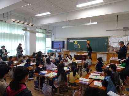 本日5校時に,1年ろ組で生活科の研究授業を行いました。「みんなの にこにこ 大さくせん」の学習で,実際に「にこにこ大さくせん」をしてみて,おうちの方や自分がどのような気持ちになったかを,交流して発表しました。