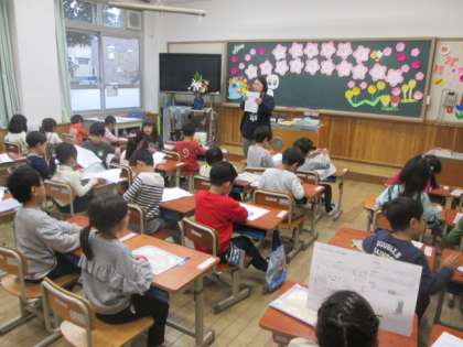 担任の先生から配っていただいたプリントの折り方やしまい方の練習をしていました。担任の先生の指導で、プリントをもらうときに「ありがとう」、後ろの人に渡すときに「はい、どうぞ」と言いながらプリントが後ろまで回っていくのを見ていると、とってもうれしい気持ちになります。どうぞ「ありがとう」や「はい、どうぞ」の気持ちをこれからも大切にしてほしいです。