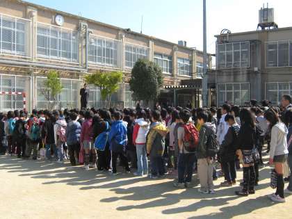 また,今回の東北で起こりました大震災で発電所がつぶれ,電気を使うことが制限され「計画停電」が起こっている時に,電車を待つ人々が整然と並んで順番を守っていることや,自分だけが良ければよいと考えている人がいないことや,みんなのために節電に協力しようと日本全体がむかっていることをお話ししました。