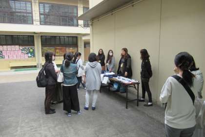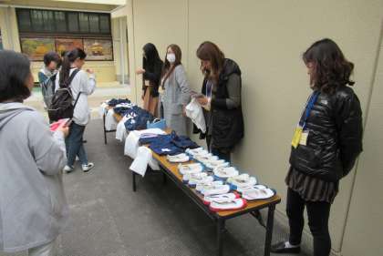 PTAの皆様が声をかけて下さって,保護者の皆様から使用していない体育服等を集め,それを本日,参観日に合わせて無料で提供しています。13時〜13時半の30分間です。もうすでにたくさんの保護者の方にご来校いただいています。