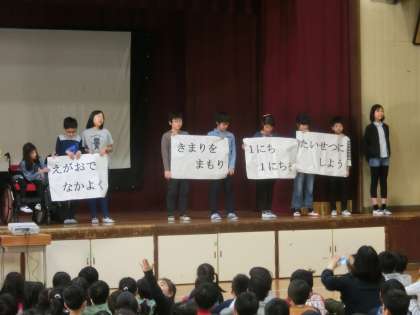 その後,委員長が,児童会目標の発表をしました。今年度の目標は以下のように決まりました。