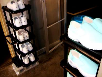 白のスニーカーが,調理をする時に履きます。