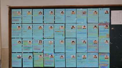 3年は組のクラス目標が決まりました。その他,自己紹介カードと図工の時間に描いた作品も掲示しています。その様子の写真にのせておきます。