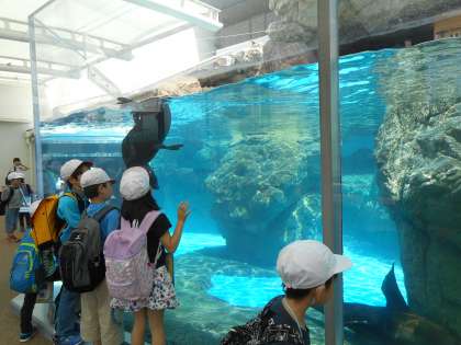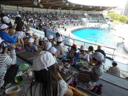 春の遠足「京都水族館」に行ってきました。アザラシやオットセイなど,いろいろな海や川の生き物を見ることができました。イルカショーでは,イルカがジャンプをするたびに子どもたちから歓声があがっていました。