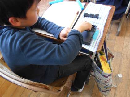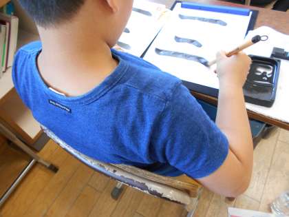 書写の学習で,毛筆の学習を始めました。初めての道具や学習の順序に戸惑いながらも,みんなとても頑張って取り組んでいました。