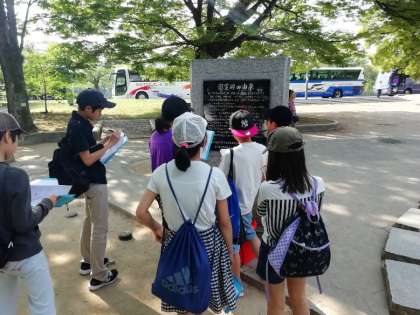 それぞれの碑などに込められた平和の願いを感じ取っています。