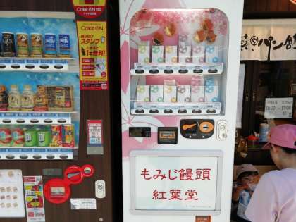 宮島商店街で,広島ならではの自動販売機を発見しました!