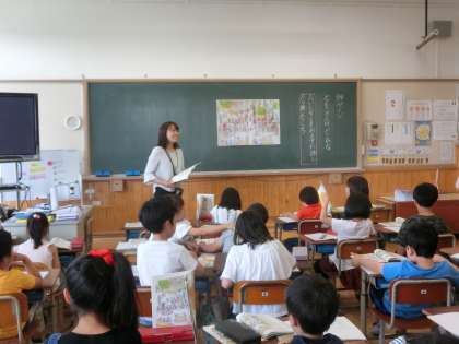 いつもとは違う雰囲気に,子どもたちも少し戸惑っている様子でしたが,授業が始まると元気よく手を挙げ,頑張っている姿が見られました。
