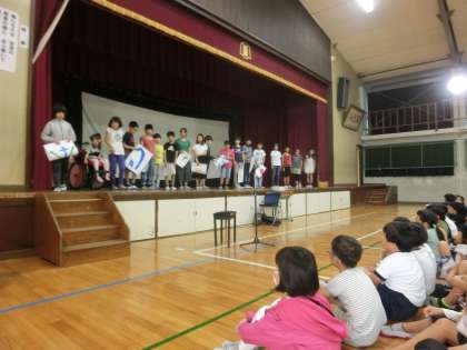 今日の朝会で,図書委員会から,読書週間の取組についての説明がありました。