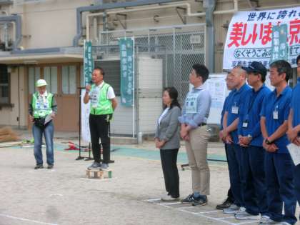 8時30分から,本校第一グラウンドで開会のセレモニーを行い,その後,清掃活動を行いました。150名近くの方々が,額に汗して清掃活動に取り組んでくださいました。本校の第二グラウンドも,おかげさまで雑草や落ち葉がきれいに駆除され,とてもスッキリしました。