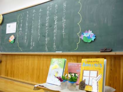 6月4日〜14日は,あじさい読書週間です。読書週間中は,朝学習の時間に読書に取り組んでいます。校長先生がプレゼントしてくださったアジサイの花が見守る中,集中して読書をする姿が見られます。休み時間には,たくさんの子どもたちが図書館に足を運んでいました。梅雨の季節,外で遊べない日はぜひ図書館に来て本を読んでほしいです。