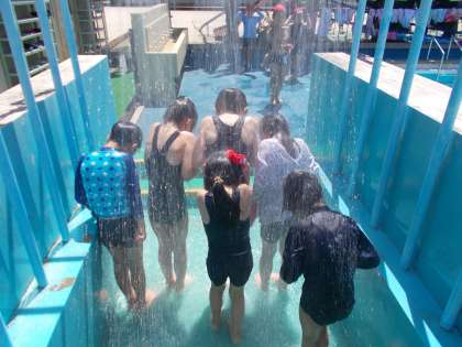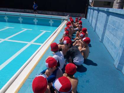 シャワーや準備体操を済ませて,いよいよ水に入ります!