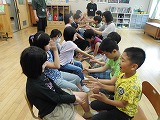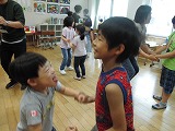 音楽の時間に,合同運動会で踊るダンスや今の季節に合う雨の手遊び歌をしてみんなで楽しみました。上級生が下級生を上手に誘っている様子が見られ,下級生が喜んでいました。一緒に関わることでみんなが良い表情で学習していました。
