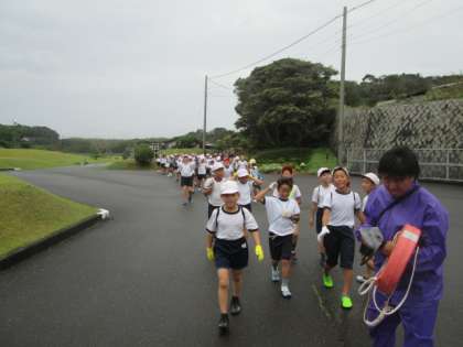 天候が心配でしたが、活動の準備をしている間に雨が小降りになり、予定通り宮崎浜で磯観察を実施することができました。