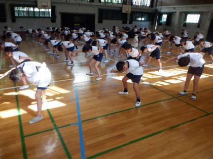 4年生は,運動会で踊る「ソーラン節」の練習を頑張っています。振り付けの一つ一つが独特で覚えるのが難しいですが,にじの子学級の三人は楽しみながら踊っています。運動会で,カッコいい姿を見るのが楽しみです。