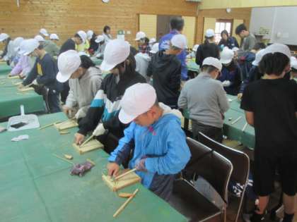 小刀を使って、竹の棒を細く削っていくのですが、力がいるのでなかなか難しく、苦戦している人もたくさんいました。