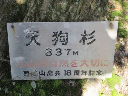 旧花脊峠からの最後の坂道を登れば、ようやく天狗杉の頂上です。少し遠くがかすんでいたのですが、大阪の「あべのハルカス」もかすかに見ることができました。鴨川や御所も見えました。