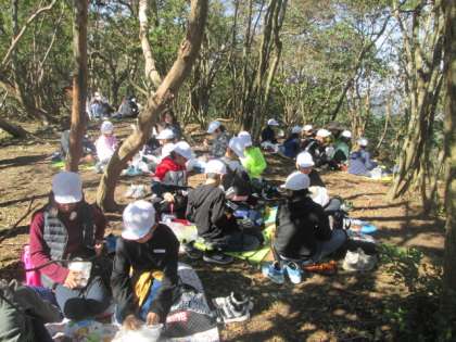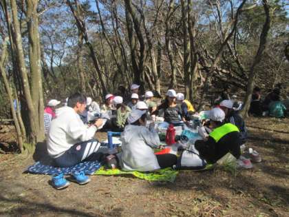 いっぱい歩いたので、おなかもペコペコです。山の上でいただくお弁当の味は格別です。とても天気がよく、風もおだやかで、まったく寒さは感じずに、おいしくいただくことができました。